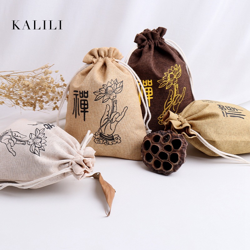 束口引き出し袋アクセサリー包装袋アクセサリー文遊び収納袋布袋禅字蓮レトロ麻布袋