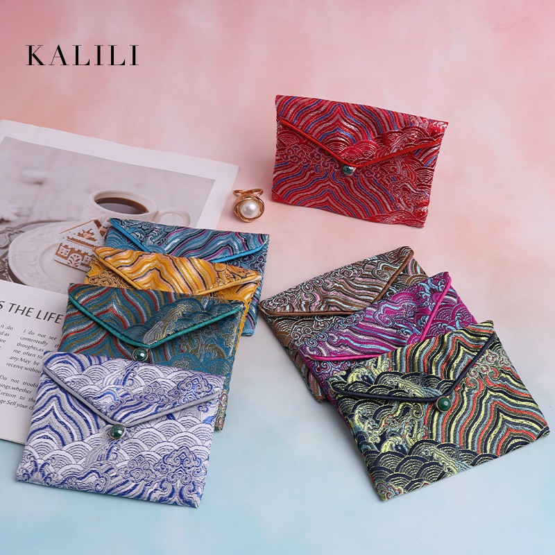 ジュエリー包装袋、ダマスク織り、波、緑のバックル、ジュエリー収納袋、布製バッグ、レトロなダマスク織りバッグ
