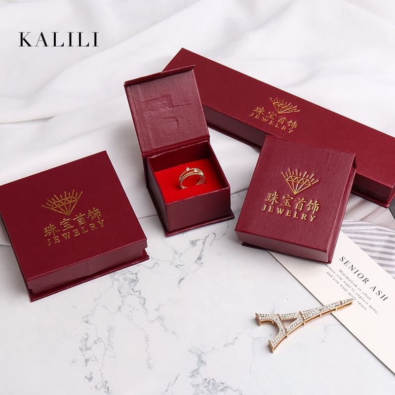 ジュエリーボックスフロントマグネットペーパーボックスリングペンダントブレスレットネックレス収納ボックスワインレッドレニー柄