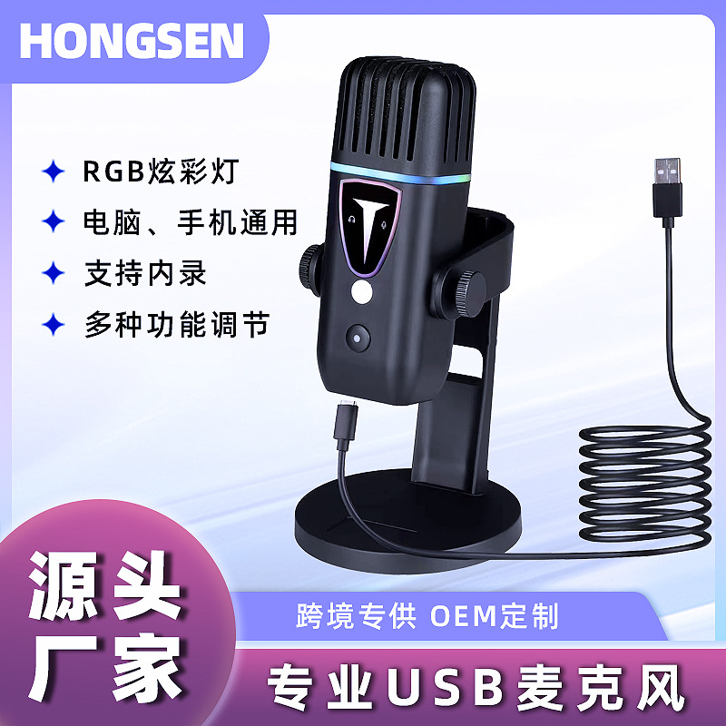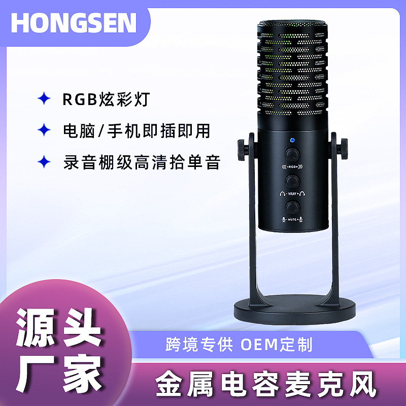 クロスボーダー私モードUSBマイクRGBコンピュータ競技ゲーム携帯電話生放送k歌録音コンデンサーマイクセット