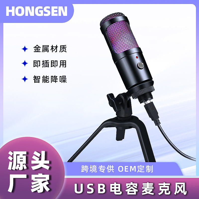 クロスボーダーUSBコンデンサーマイクパソコン携帯電話ライブ録音RGBカラフルでプラグアンドプレイのゲームマイク