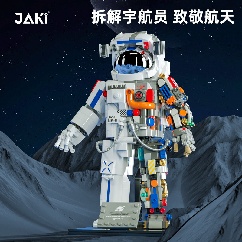積み木のおもちゃの単独の宇宙飛行士の月の宇宙飛行士はサイズの粒子の宇宙飛行の模型を詰めて贈り物の卸売りを並べます。