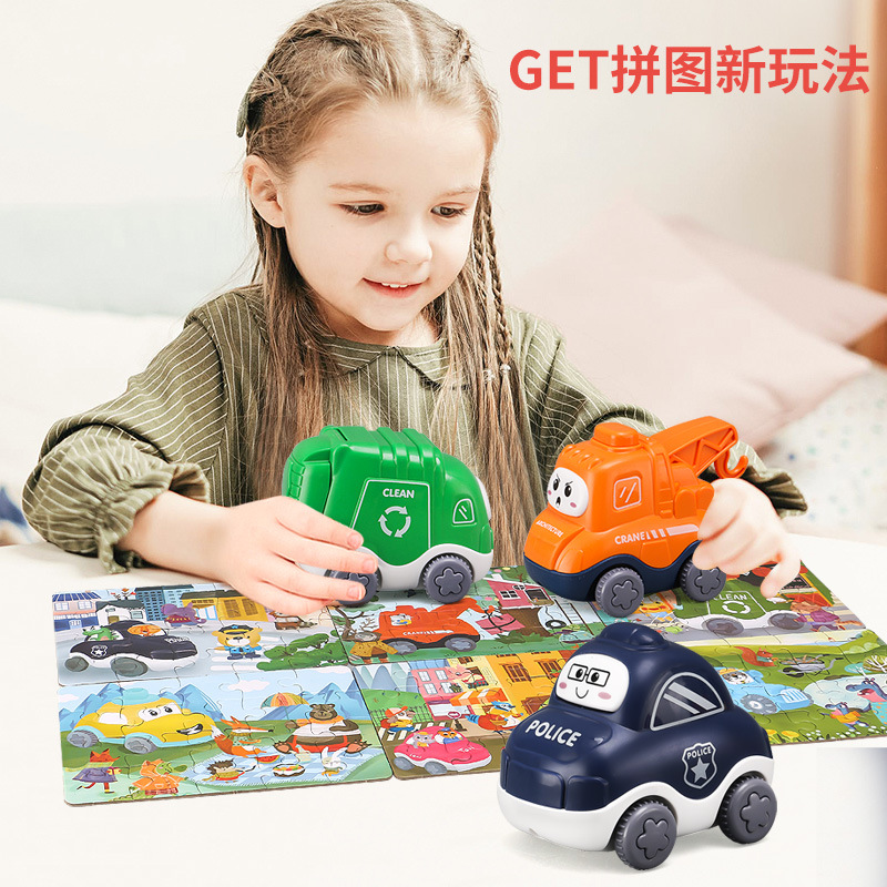 子供の漫画のジグソーパズルのおもちゃの車の1-2-3歳の赤ちゃんは早く知育を教えて脳の慣性の小さい自動車のおもちゃの男の子の6を動かします。