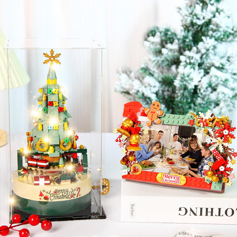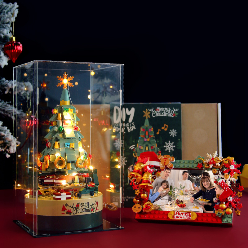クリスマスツリーの積み木中国の積み木回転オルゴールクリスマスの積み木クリスマスのプレゼントはレゴと互換性があります。