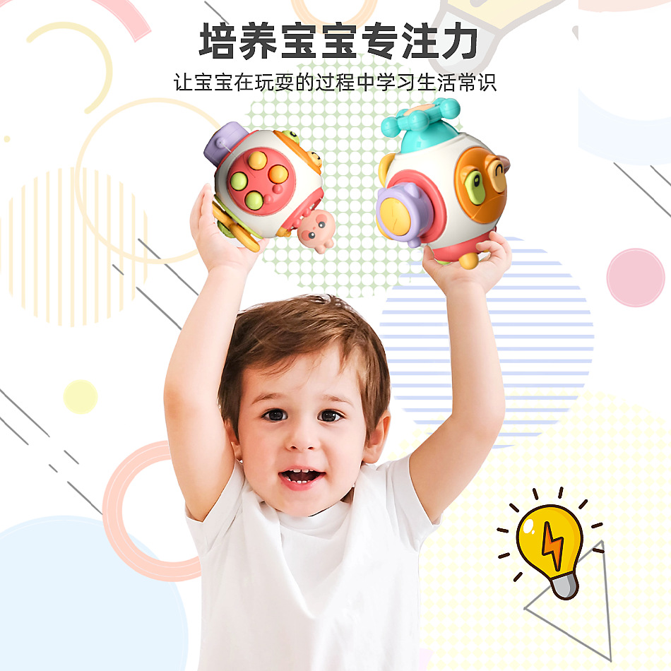 乳幼児の忙しい手でボールをつかんで鈴を鳴らして手の動作を握って六面体の益智の集中力のおもちゃを訓練します。