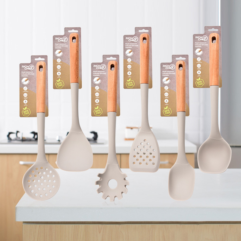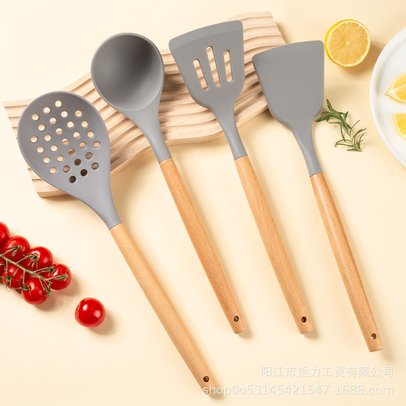 国境を越えた食品グレードのシリコーンキッチン用品セットキッチンスパチュラスープスプーンザルスパチュラ麺ベーキングスクレーパーブラシスクレーパー
