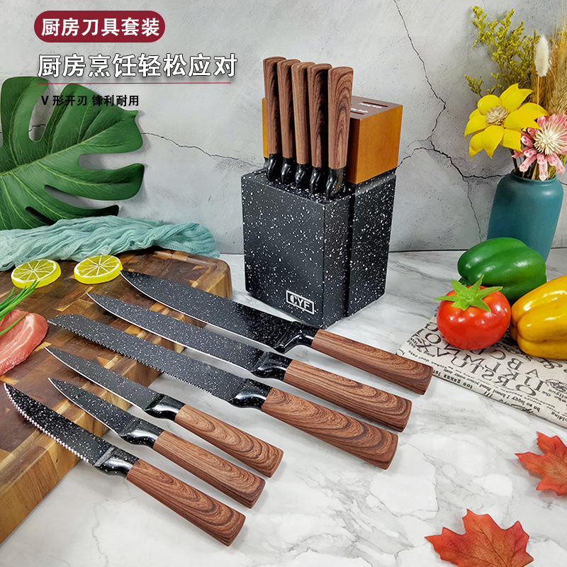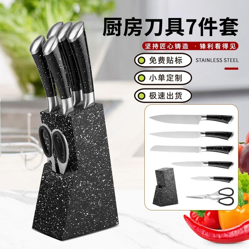 クロスボーダーナイフセット 7点セット キッチンナイフホルダー一式 シェフナイフ ハサミ 中空ハンドル 家庭用ステンレスナイフセット