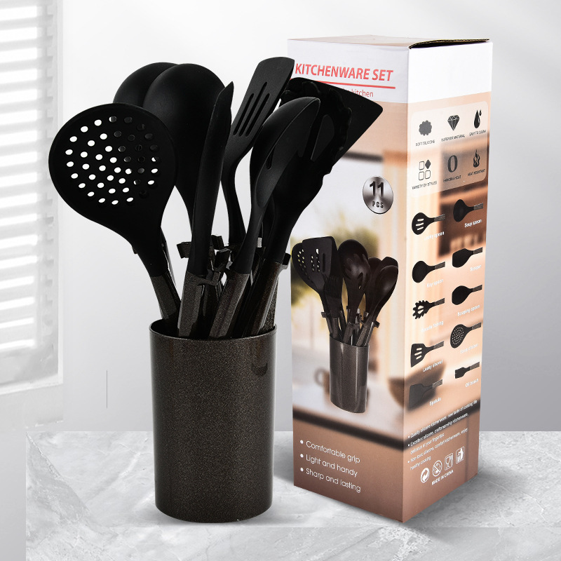 シリコーンキッチン用品組み合わせセット実用的な収納バケツ家庭用キッチン 11 ピーススパチュラスープスプーンノンスティックパン