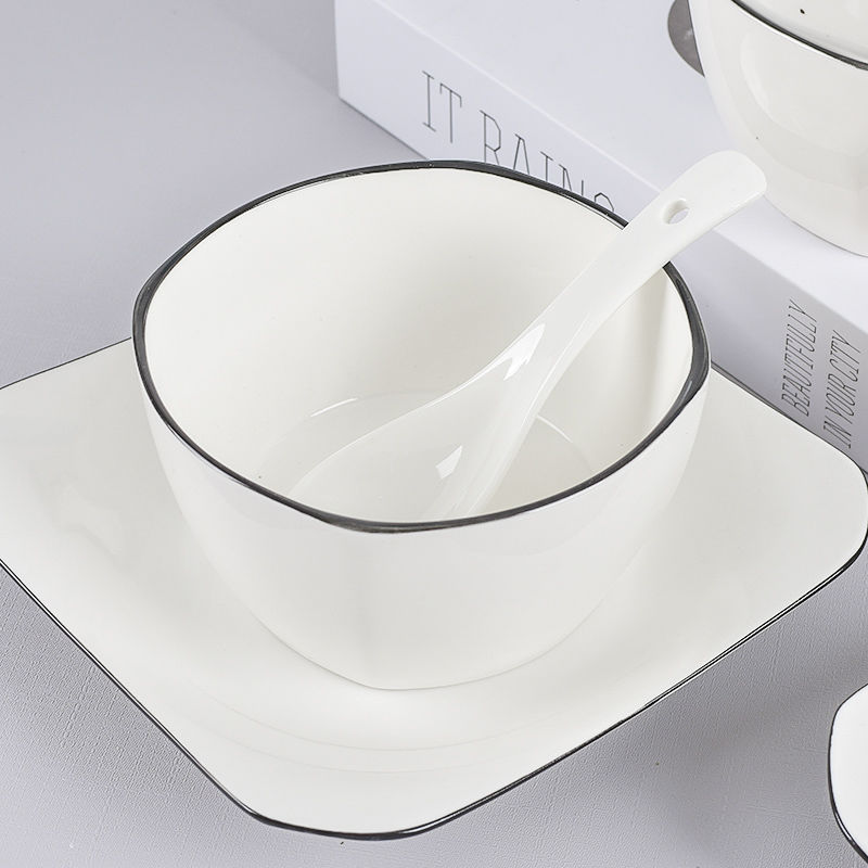 景徳鎮の日本式の碗の皿のセットの北欧の陶磁器の碗の箸の皿の家庭用電子レンジの食器の食事の碗の小さいスープの碗