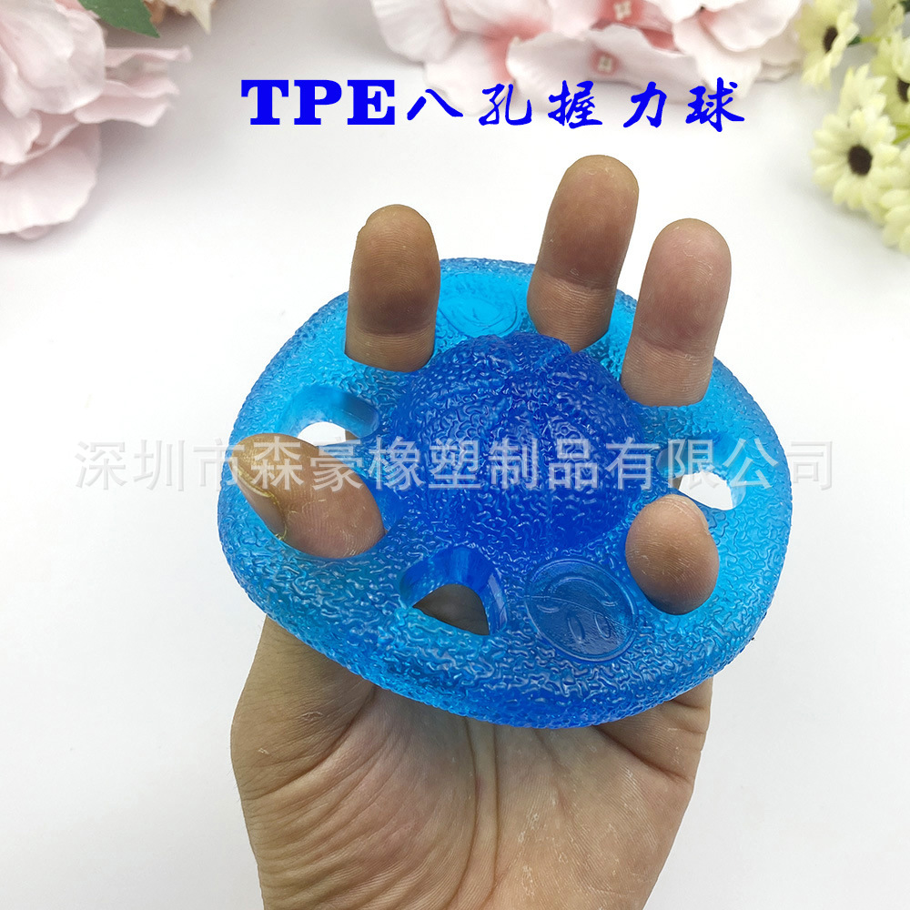 卸売りの握力ボールtprは手の力のリハビリの訓練の器材の空飛ぶ円盤の柔らかいゴムの握力のボールの8穴の指の握りのボールを練習します。