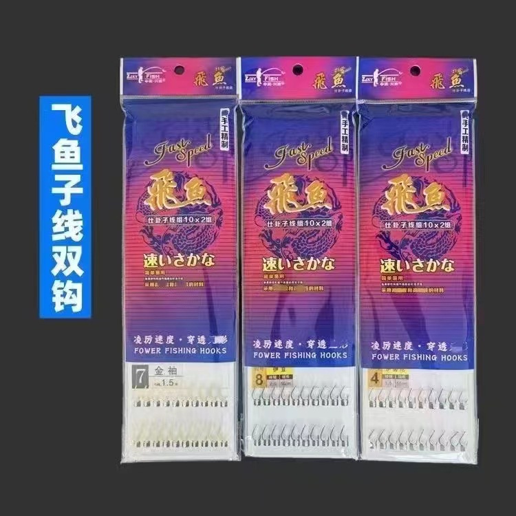 飛魚束好子糸ダブルフック50cm子糸仕掛金袖金海夕伊勢尼伊豆有逆刺漁具