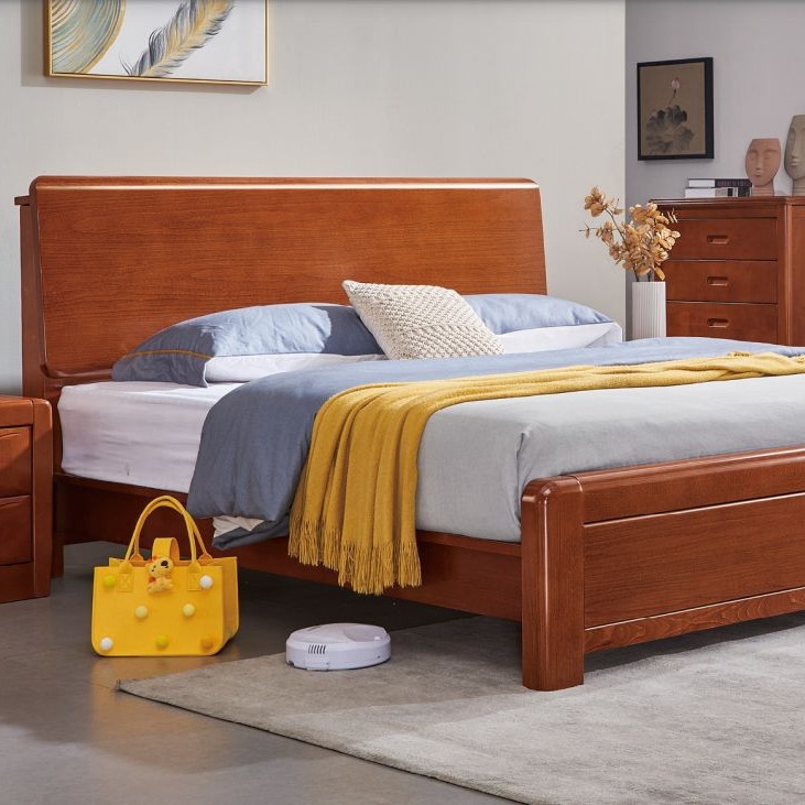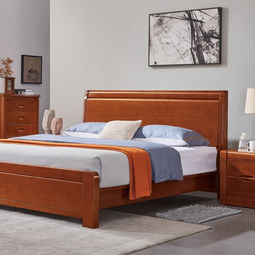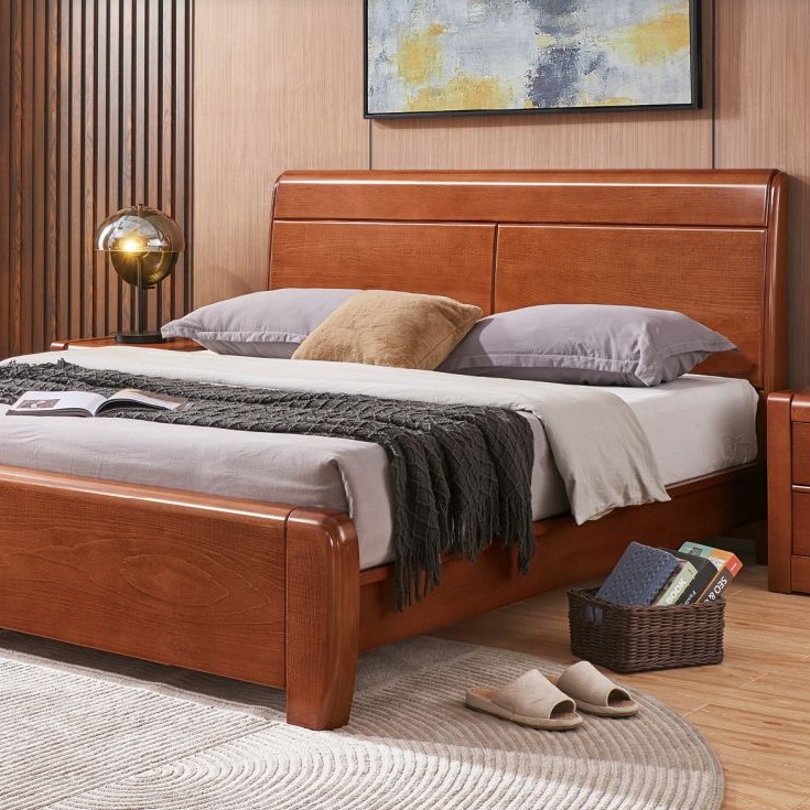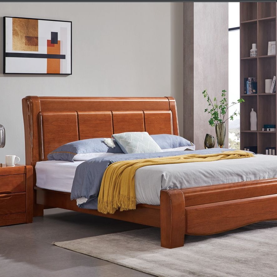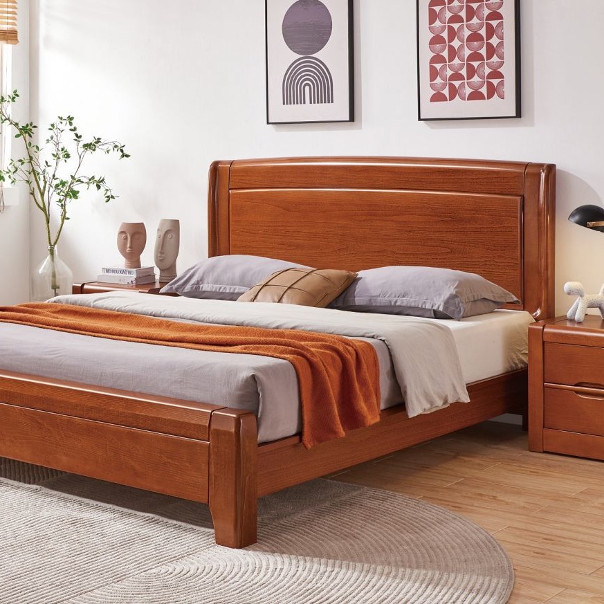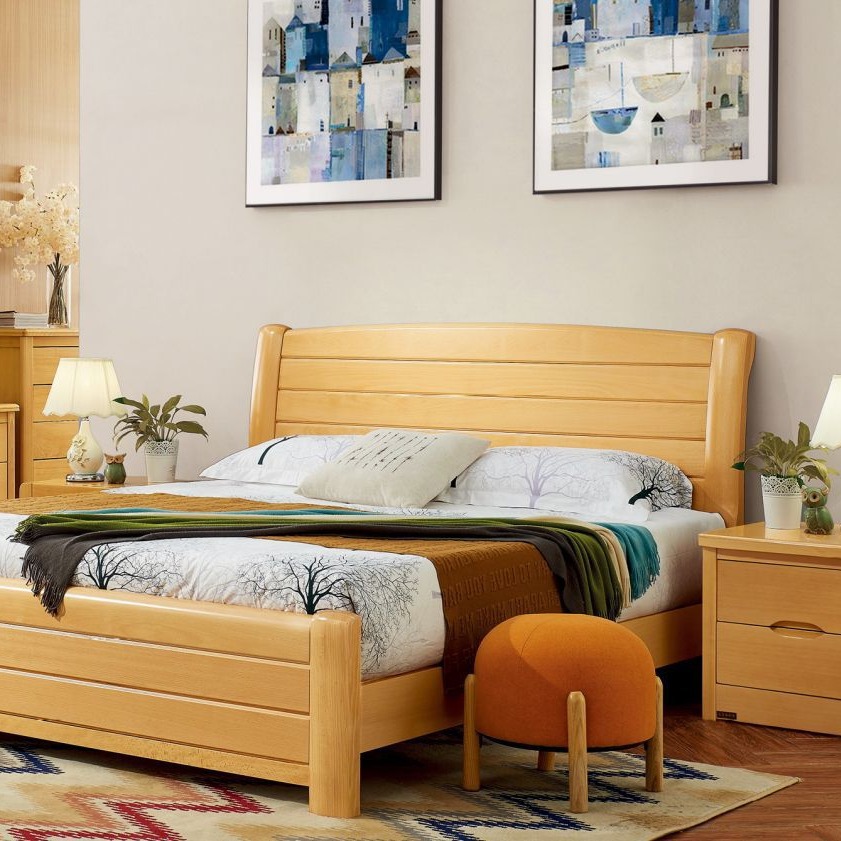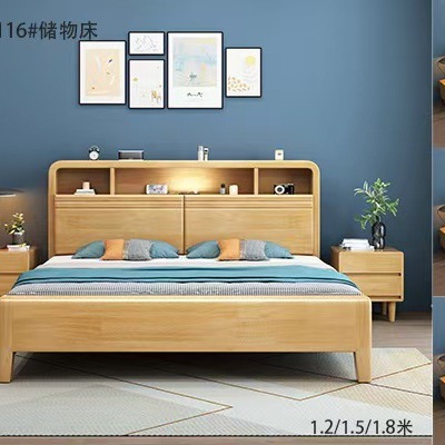北欧1.5ダブルベッド主臥1.8灯付き結婚ベッド家庭用シンプル1.2多機能実木ベッド