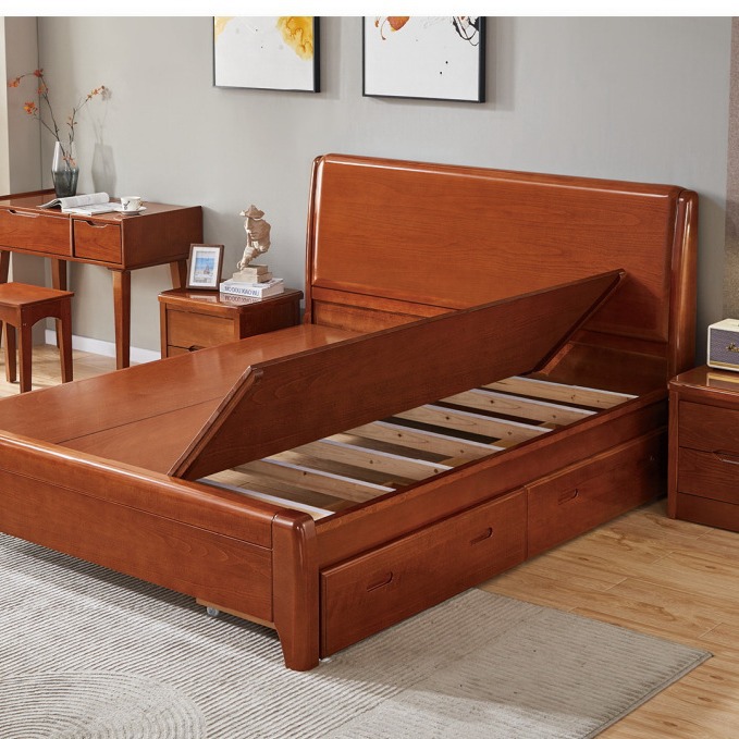 北欧実木ベッド現代シンプル1.8メートル主寝室結婚ベッド児童ベッド家庭用ソフトは高さ1.5メートルの箱収納ベッドに頼っている