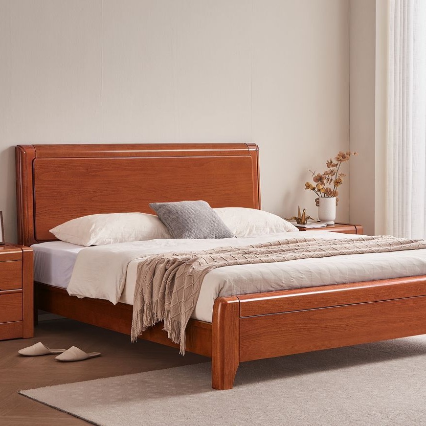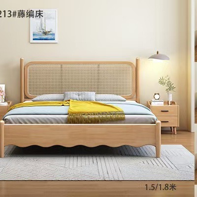 北欧実木藤編みベッド1.8メートルツインベッド1.5メートル民宿ベッド寂風レトロ原木シンプル寝室ベッド
