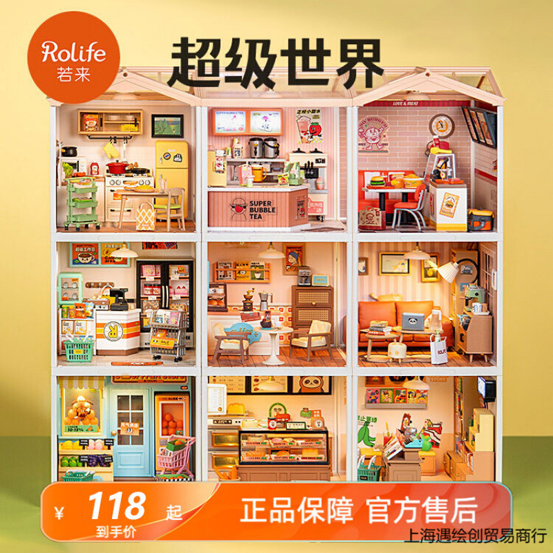 Ruolai スーパーワールド diy キャビンミルクティーショップキッチンバーアフタヌーンティー組み立ておもちゃクリエイティブビルディング