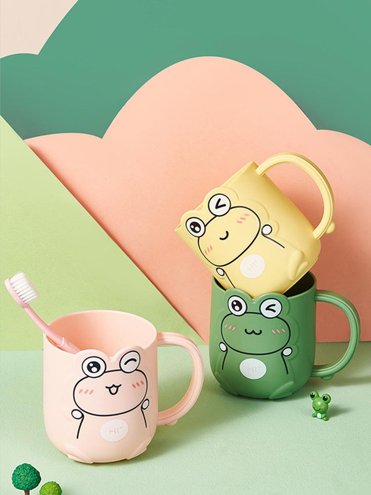 クリエイティブな子供の漫画のマウスウォッシュカップ、厚みのある落下防止歯磨きカップ、家庭用のかわいい小さなカエルの歯ブラシカップ、歯ブラシカップ