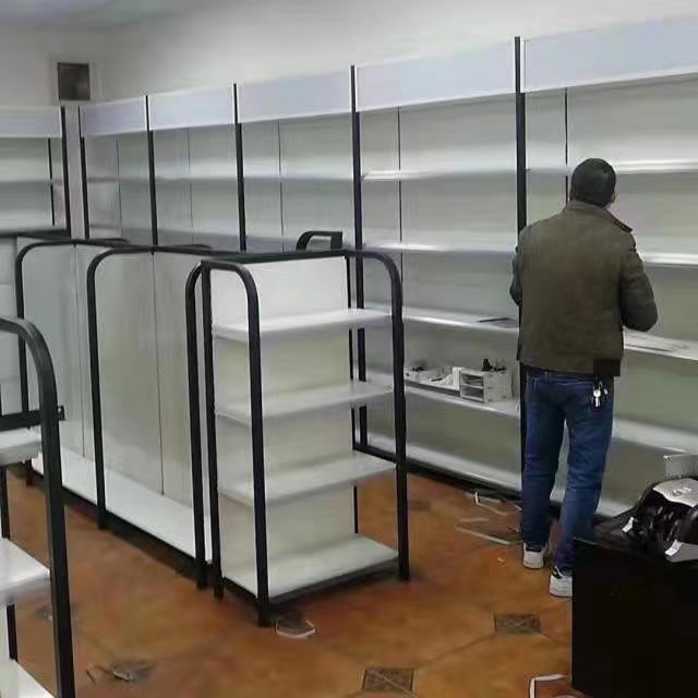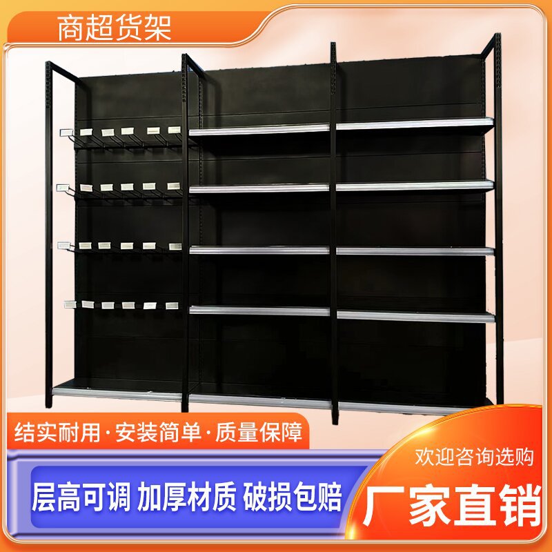 4柱つや消し黒収納ラックスーパーマーケット棚ディスプレイラックコンビニエンスストアスーパーマーケットストア母子ストア棚生鮮食品棚