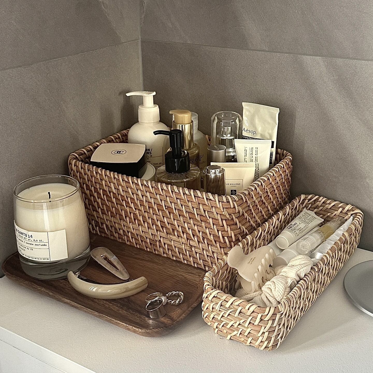 籐収納バスケットデスクトップ化粧品収納ボックス玄関アメリカ雑貨スナック収納バスケット洗面台収納バスケット