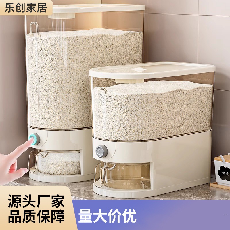家庭用大容量の厚いプラスチック製の米バケツ、食品グレードの防虫および防湿米貯蔵タンク、米を押し出すのに便利なワンクリック