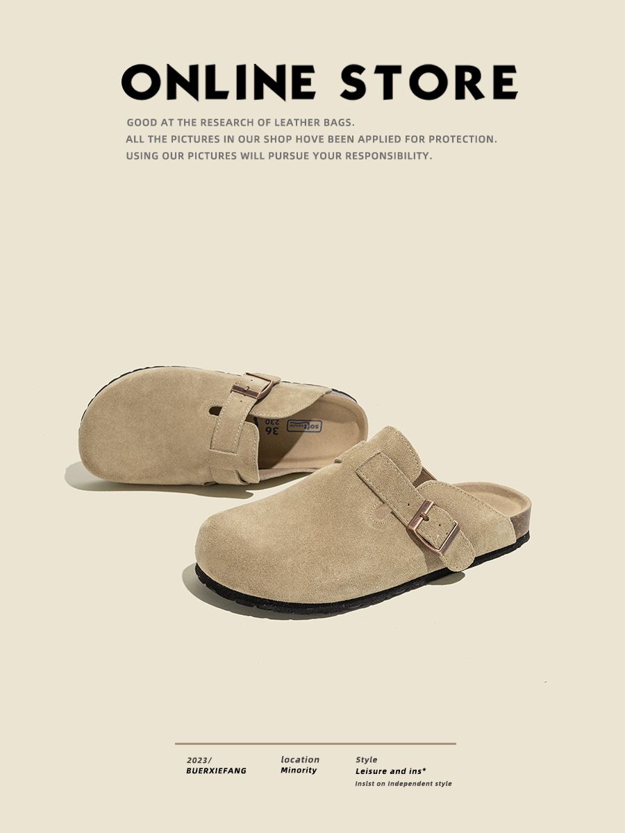【在庫あり・価格78】Fujixiaofang 本革ビルケンシュトックシューズ レディース アウター フィッシングコルクビルケンシュトックトゥハーフスリッパ