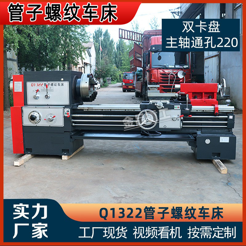パイプねじ切り旋盤 Q1322 横型二重チャック 220 大口径ヘビーデューティガイドレール 550 一体型斜め列ベッド