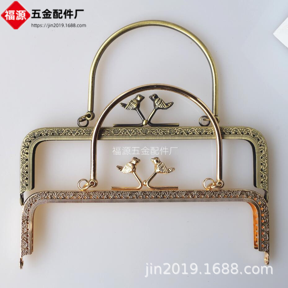 20.5cm角型エンボス小鳥頭鉄手挽口金金色と青古各色300件