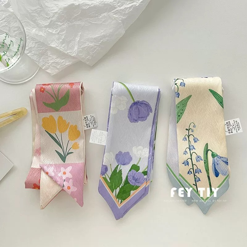 小清新春夏新作シルクタオルのチューリップのプリントのリボンは髪を縛ってハンドルを飾ります。