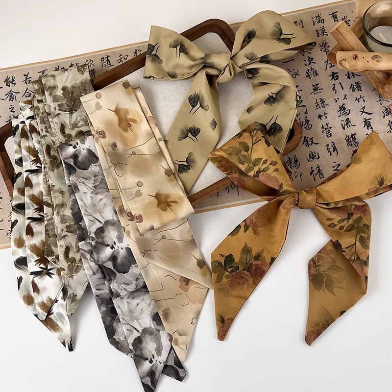 美ラード秋色系レトロなシルクタオルのヘアバンドの女性の小さい長いリボンの装飾のリボンのインスタの風は髪の毛を刺して髪を縛ります。