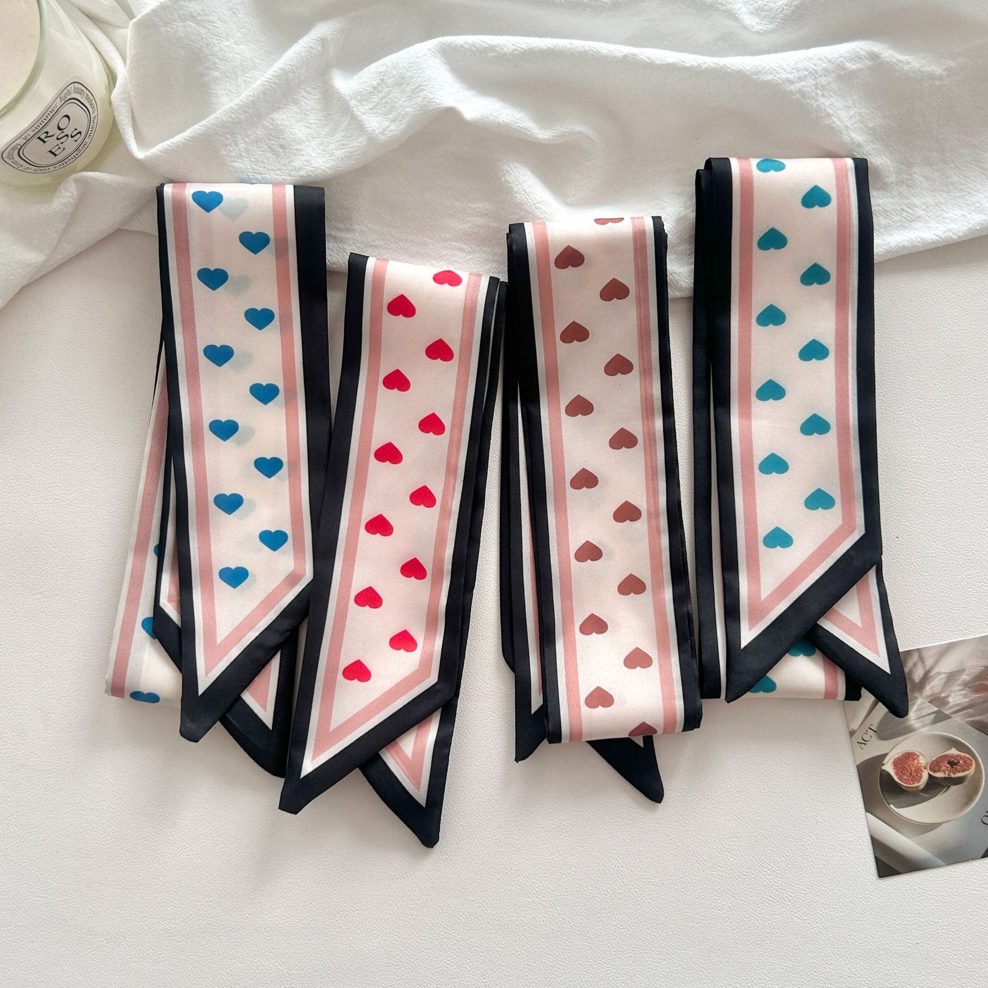 レトロなフレンチスイートハートヘアリボン、ラブドットスカーフ、多用途のシンプルなネックタイ、小さなスカーフ、長い小さなリボン