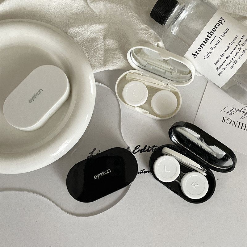 高颜値美瞳ケース鏡付きクリーム色シンプル携帯コンタクトレンズケース卸売りカップルケース看護ケース