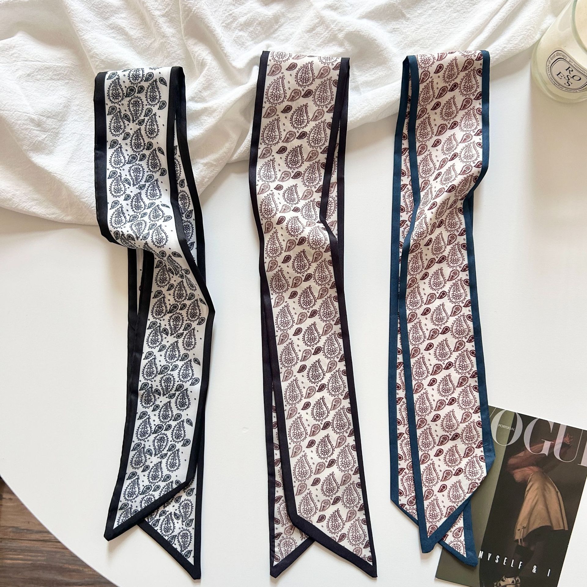 フレンチスタイルの新しいレトロなカシューナッツプリントシルクスカーフ、多用途のネックスカーフ、多機能のヘアタイとバッグリボン