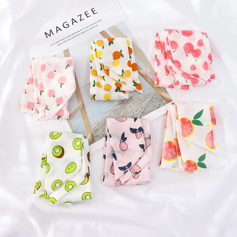 2024新型の韓国系の果物のスカーフの女性のかわいいプリントは髪のリボンを縛ります。