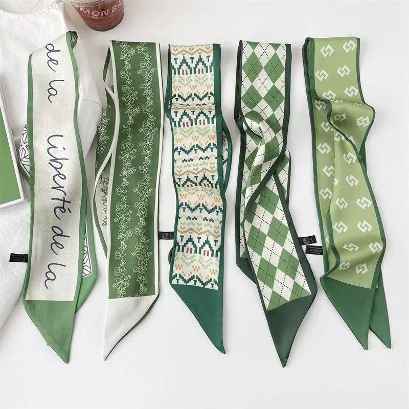 フランスの緑系のシルクタオルは優雅で、髪を結ってシャツを包んで飾ります。