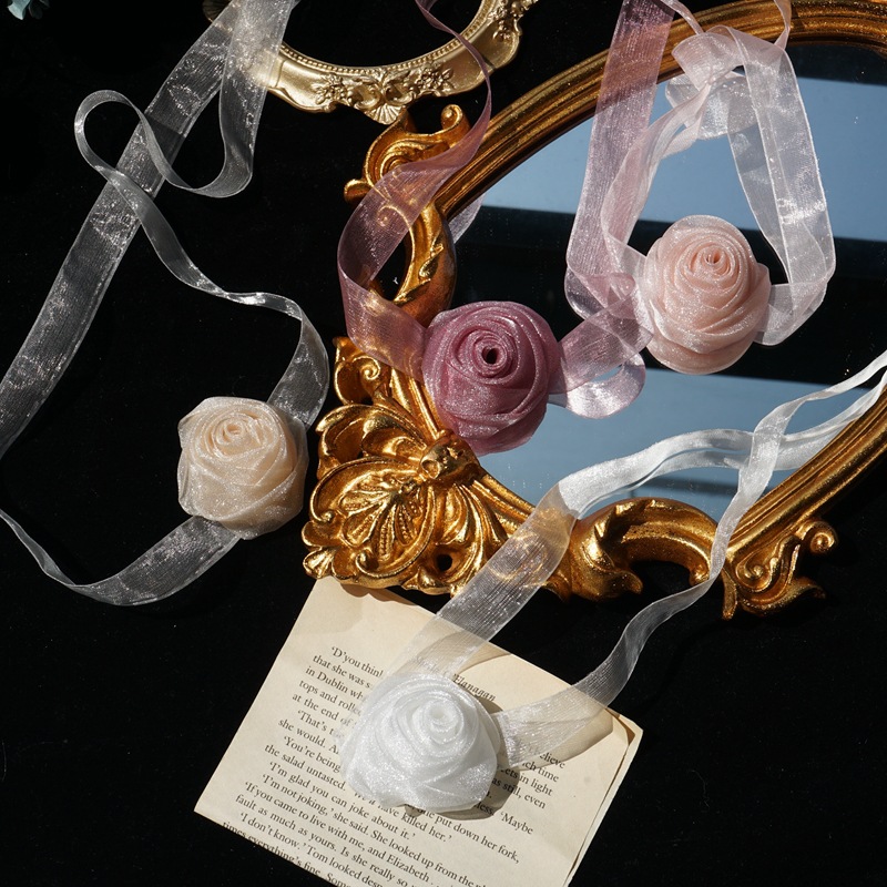 韓国のレトロで優雅な超仙気質のバラの花の網の糸は首輪のファッションを縛ります。