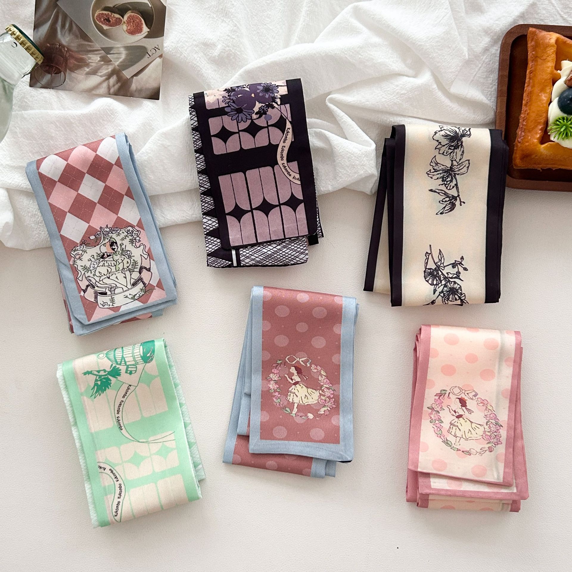 レトロな恋人のヘアタイ、ロングリボン、フレンチロリータ装飾スカーフ、多用途の小さなスカーフリボン