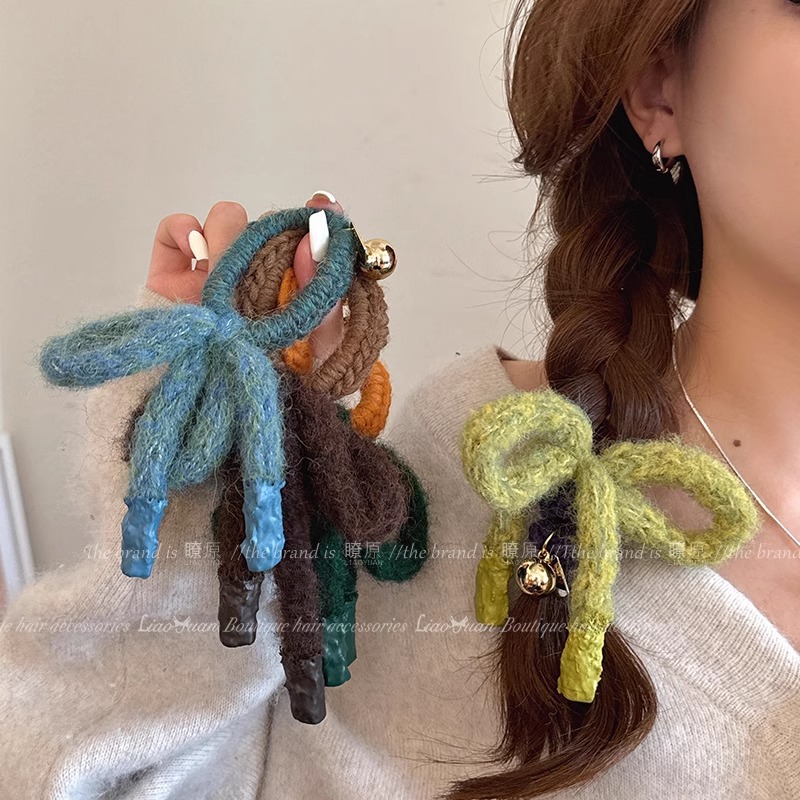 柔らかいモチモチのかわいい蝶結びの頭飾り秋冬の毛糸の髪輪のシンプルな髪ひもの女性2024の新型の百合の髪筋