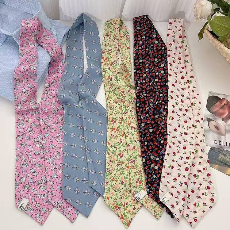 優しい気質の韓系の小さい花のスカーフの春夏の長い条のリボンは包みのヘアバンドを縛って百合のファッションの装飾のスカーフの女性を結びます。