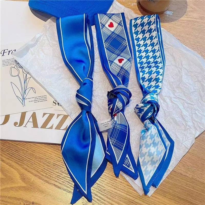 フランスの高級感のクラインの青いシルクのタオルの百合の気質はシャツのスカーフを組み合わせて白い髪を刺して小さいリボンを縛ります。