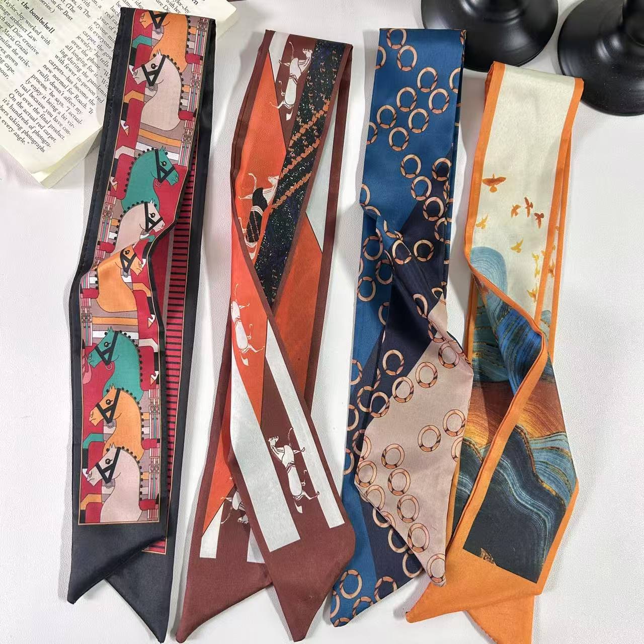 春夏新作韓国風カシューナッツプリントシルクスカーフ、多用途で気質のあるヘアタイ、リボン、多機能ネックタイスカーフ