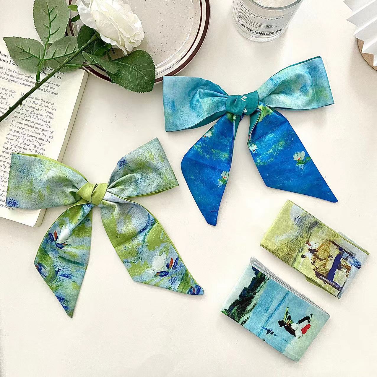 レトロな油絵のシルクタオルには、両面の二重プリントの長いバーが付いています。