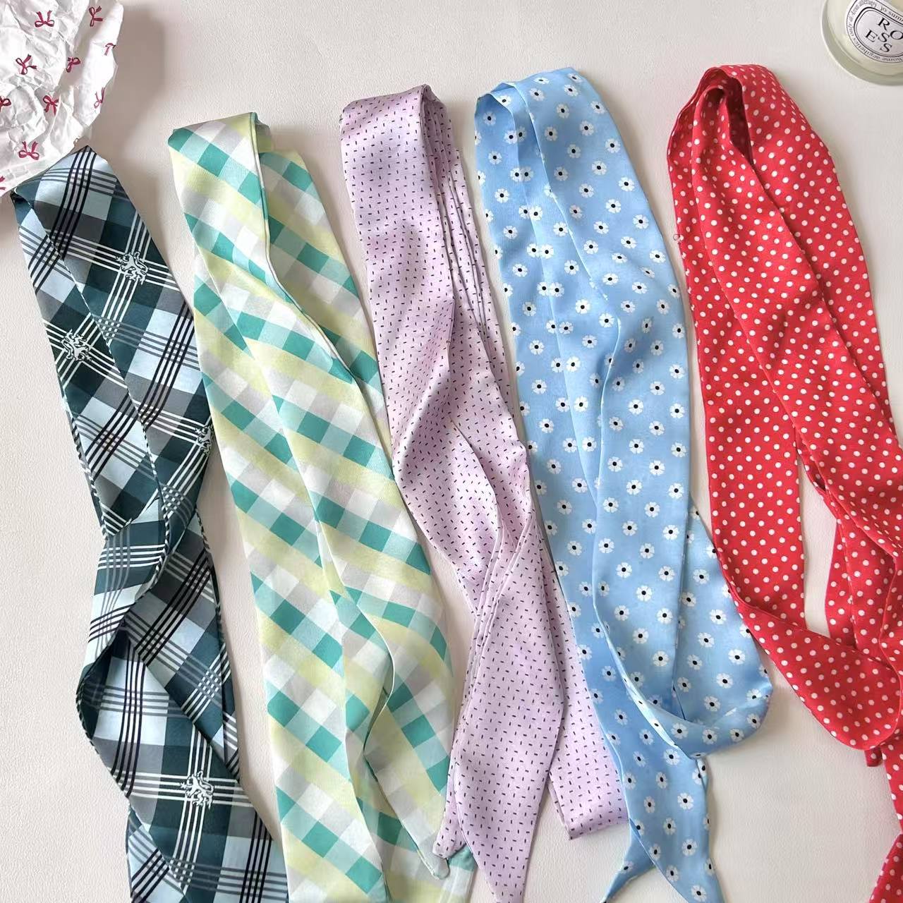 早春の新型の優しい波点のシルクタオルの女性の韓系は簡単で長い条を結んで髪を縛ります。