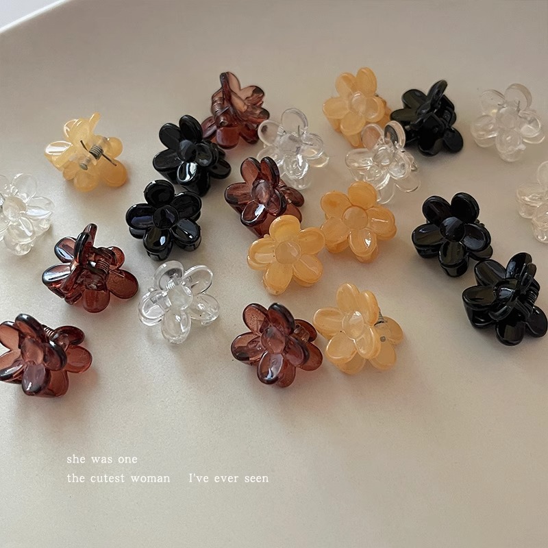透明な花のヘアピンの女性の額の前髪は後頭部を挟みます。