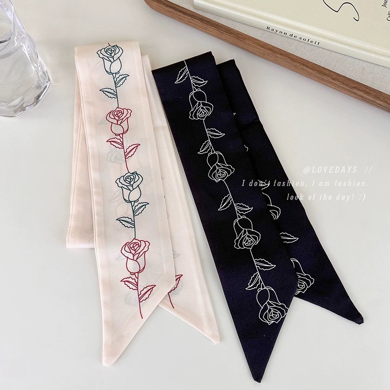 韓国のラブプリントシルクスカーフ、シンプルで多用途、ネックスカーフ、装飾的な気質、多機能のヘアタイ、小さなリボン