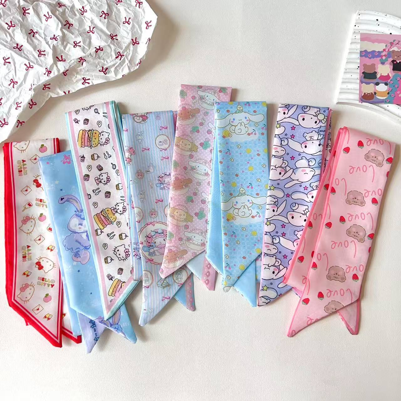 かわいいサンリオシリーズのシルクタオルの子供の髪の長いリボンの蝶結びの装飾の甘いシャツのスカーフのリボン