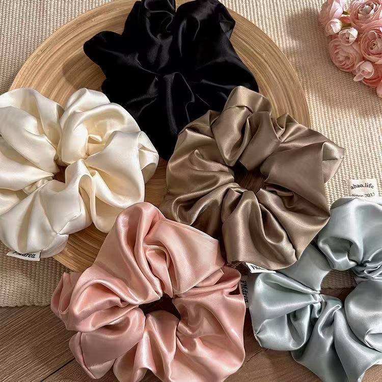 フランスのレトロな大腸のシュシュの新型の団子の髪のひものサテンの高級感の大きい腸の輪の高弾力の丈夫なシュシュ
