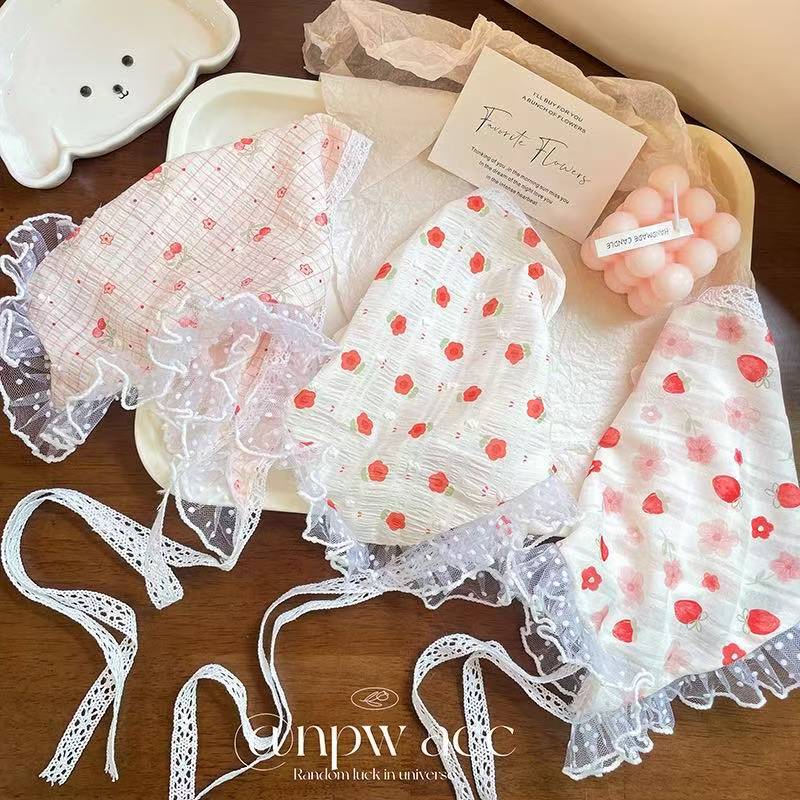 韓系春夏新作レース三角タオル女性甘美小清新格子スカーフ田園風髪飾り