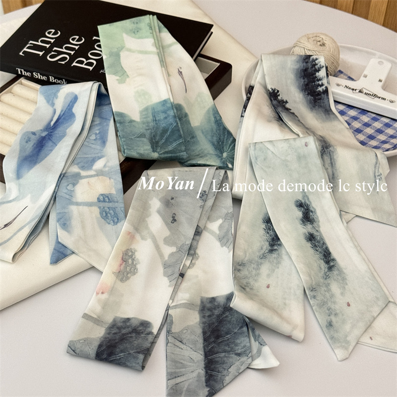 春夏の新型緑系水墨シルクタオル新中国式小清新髪結束バッグ高颜値シャツスカーフ