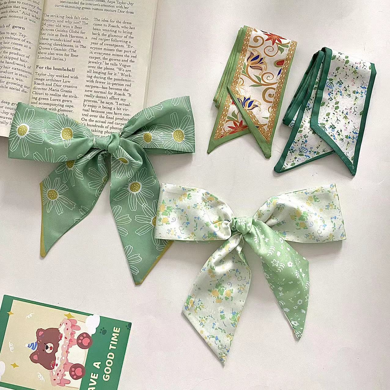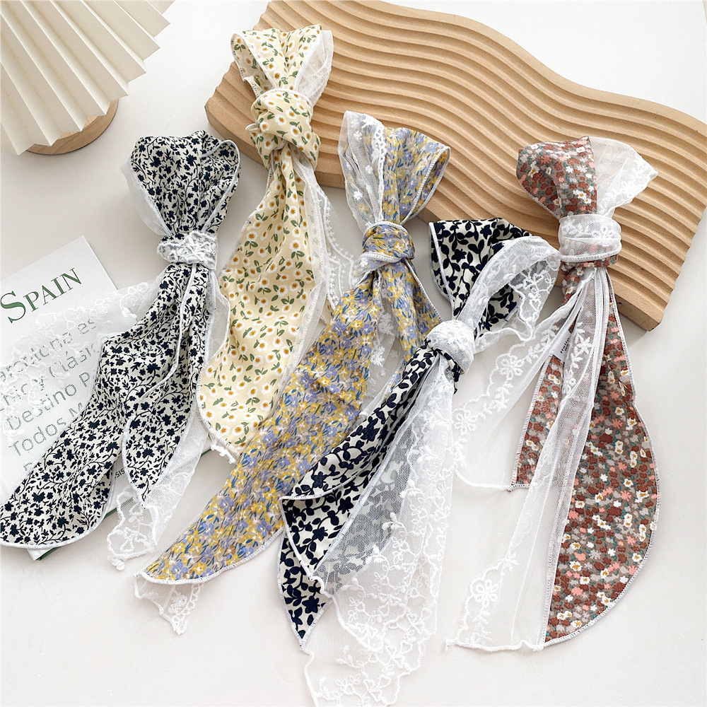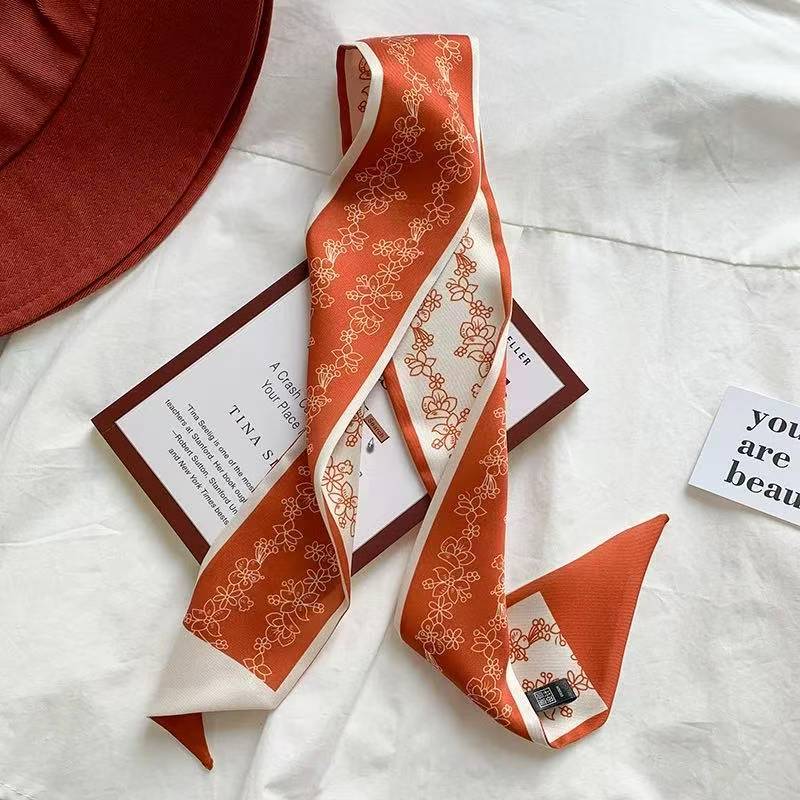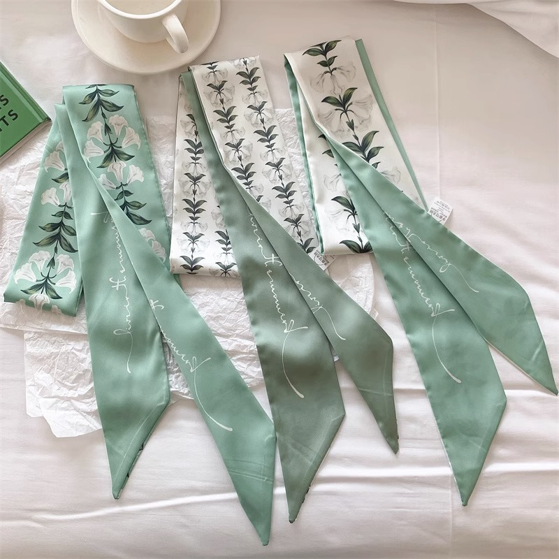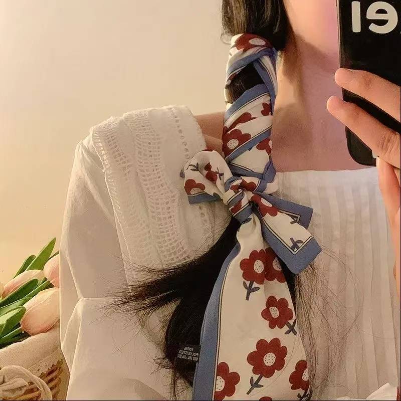 春夏の新型の花のシルクタオルの韓系の復古の髪を結んで長い条の小さいリボンを包んでシャツを組み合わせてスカーフの女性を飾ります。