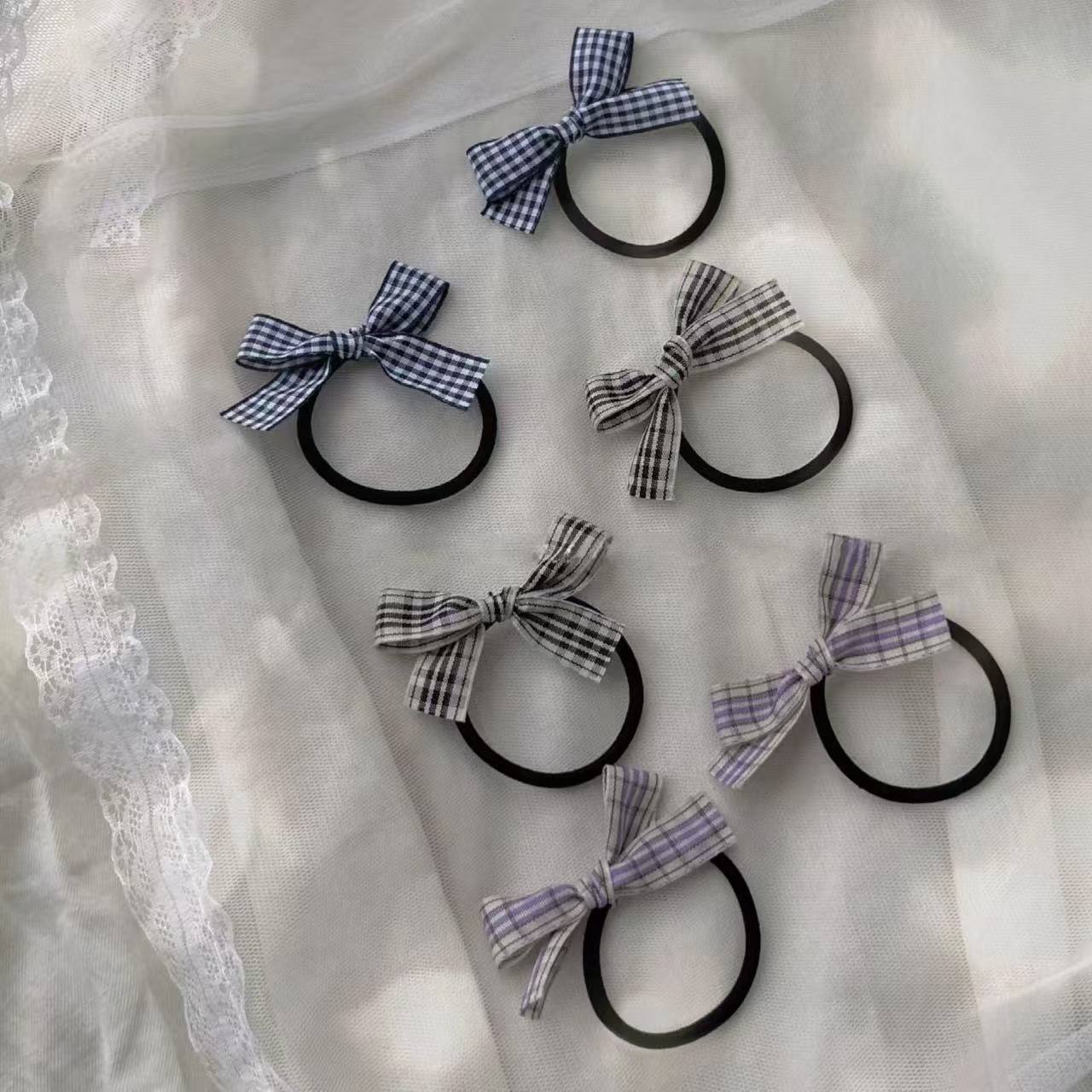 韓国系の甘い格子の蝶結びの髪輪の早春の新型の少女の心の髪のひもの高い顔の値の学院の風の髪飾り