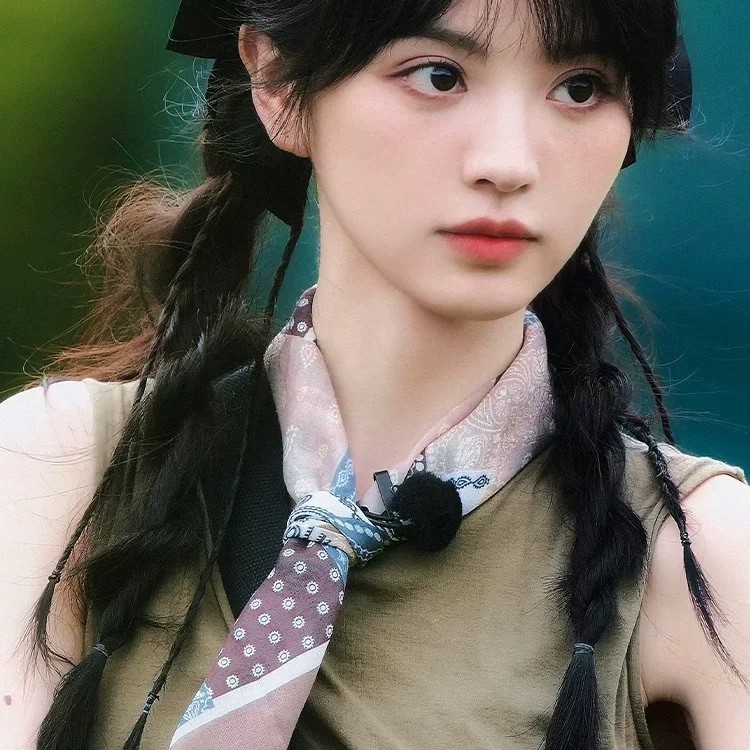 フランスのレトロで優雅なシフォンのシルクタオルに合わせて、雰囲気の波点をつけて首のマフラーを結びます。